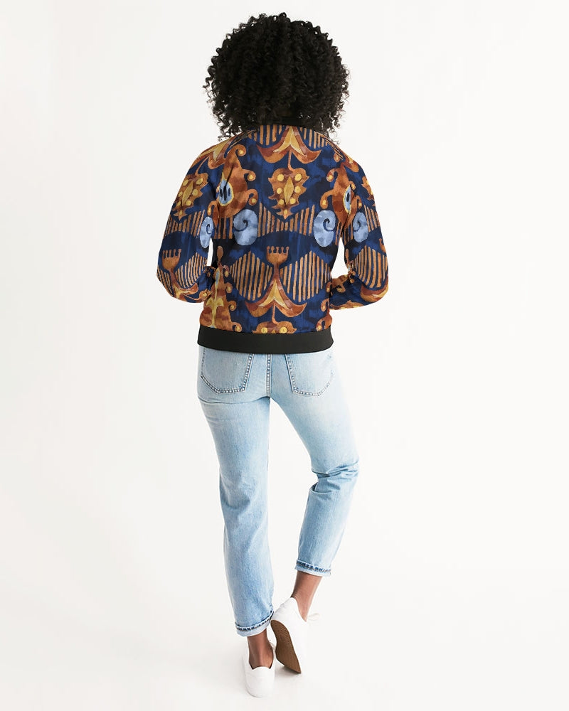 Über die KunstGoldgarten-Ikat Balinesisches IKAT-Set aus frisch hergestellten handgemalten Aquarellmustern, inspiriert vom traditionellen indonesischen Ikat-Färben und Weben von Stoffen. ProduktdetailsHandgeschnitten und mit Sorgfalt gefertigt, wird Ihre individuell gestaltete Damen-Bomberjacke jeden Look hervorheben! Sein leichter, luftiger Stoff ist mit der perfekten Isolierung für die kühleren Monate gefüttert, was ihn zu einem großartigen Begleiter für das ganze Jahr macht.