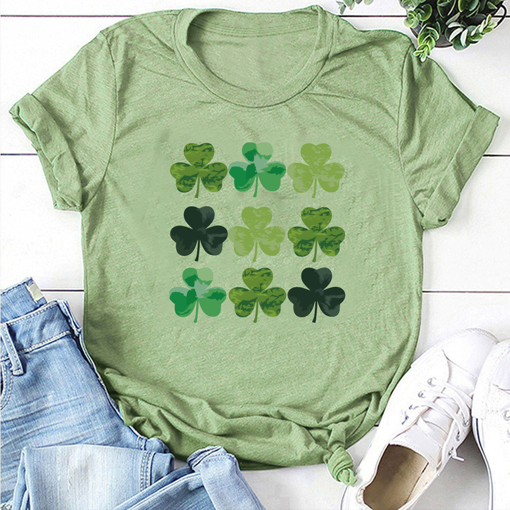 St. Parker's Day Green Cotton Short Sleeve Women's Top