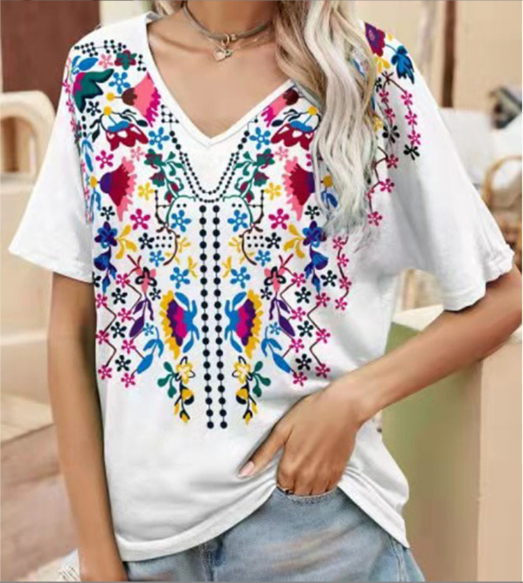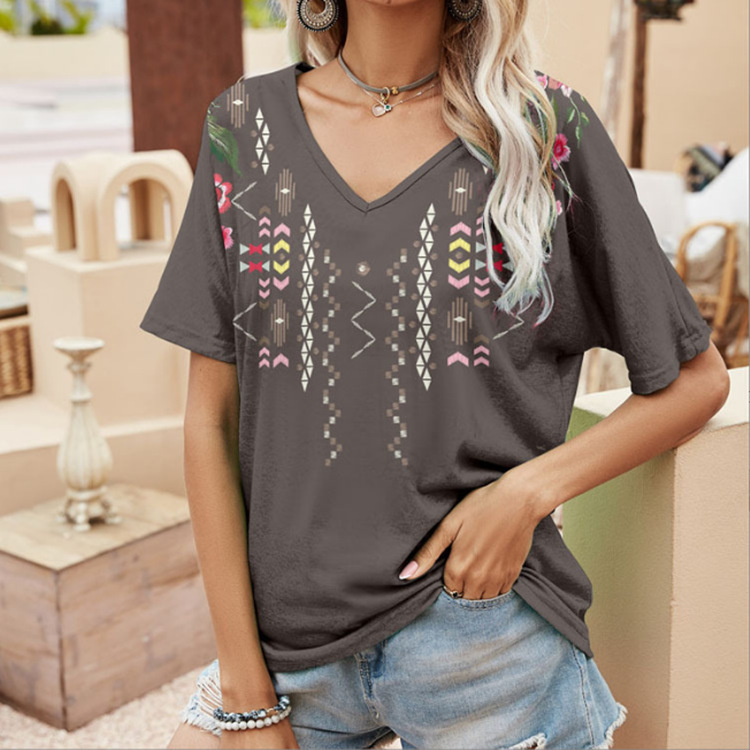 Women's Ethnic Print Short-Sleeved T-Shirt