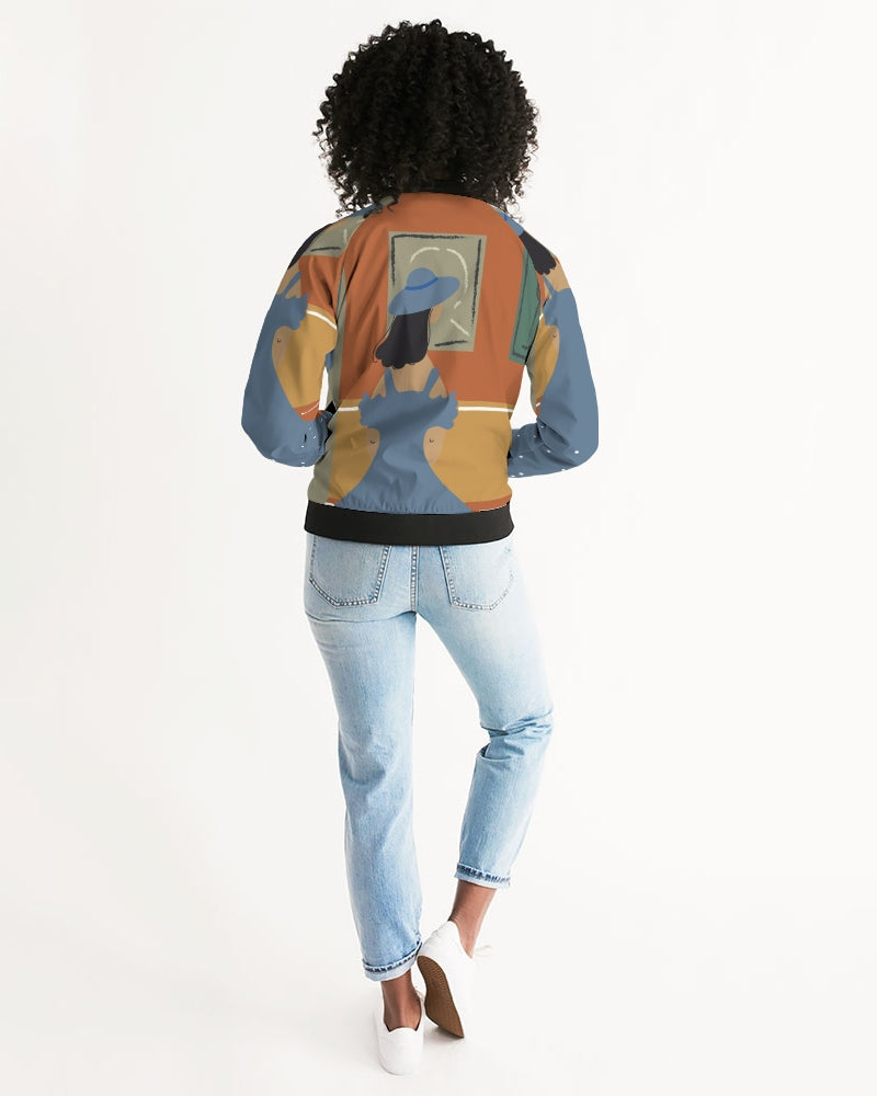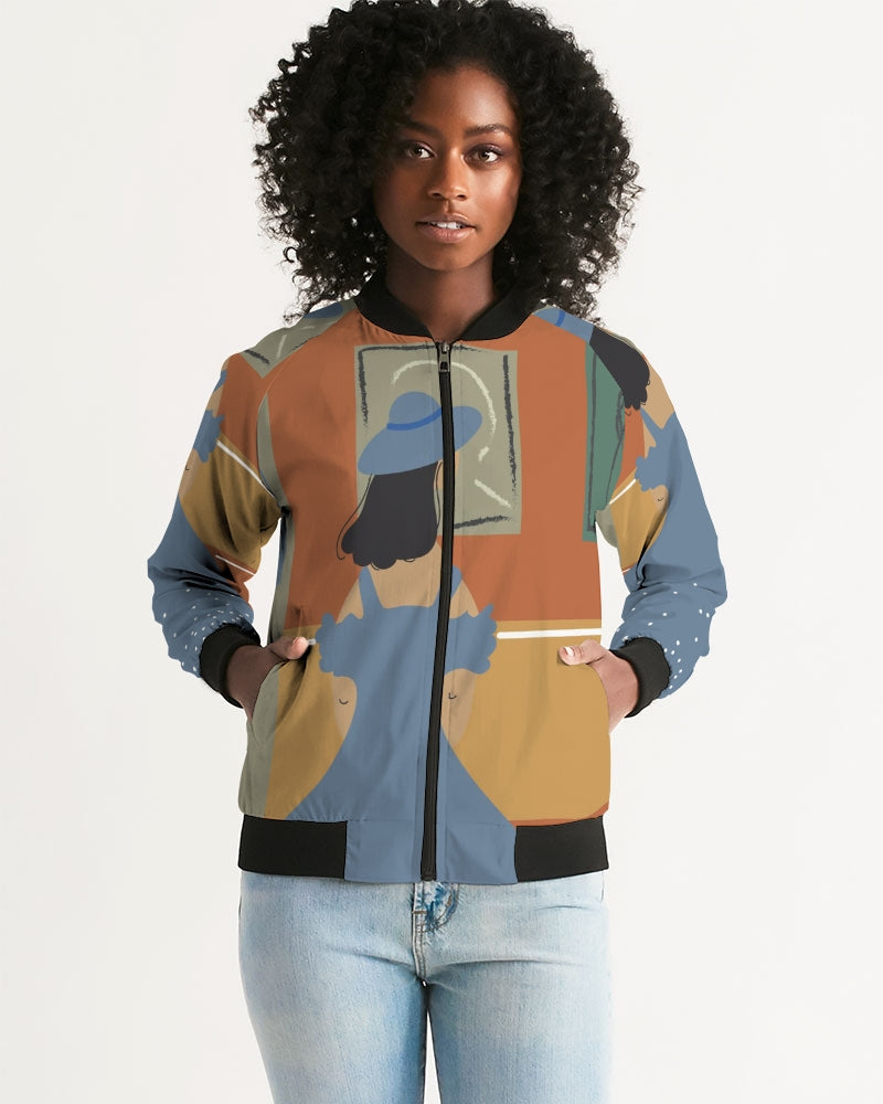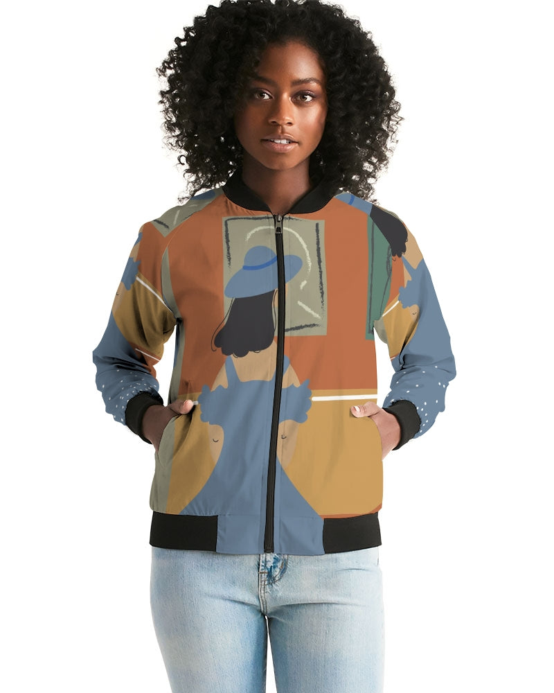 About The ArtGallery Illustrations art work by Bella. Product DetailsHand-cut and crafted with care, your custom designed Women's Bomber Jacket will set off any look! Its lightweight, airy fabric is lined with the perfect amount of insulation for the chillier months making this a great year round go-to.