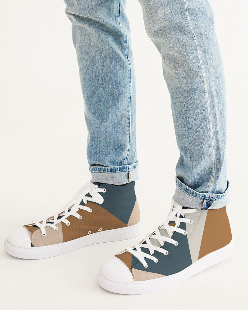 About The ArtGeometry Color geometry shapes. Product DetailsRock your custom made kicks on a trendy classic. Our Men's Hightop Canvas Shoe is a minimalist sneaker but gives comfort for a day or edgy night look.