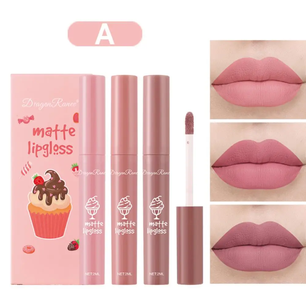 3pcs Lip Gloss Set Ice Cream Matte Velvet Waterproof Long-lasting Liquid Lipstick