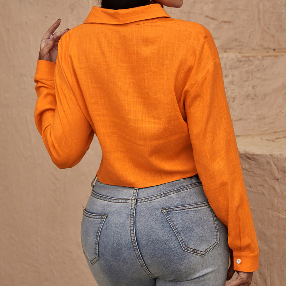 Women Orange Short Long Sleeve Top Shirt