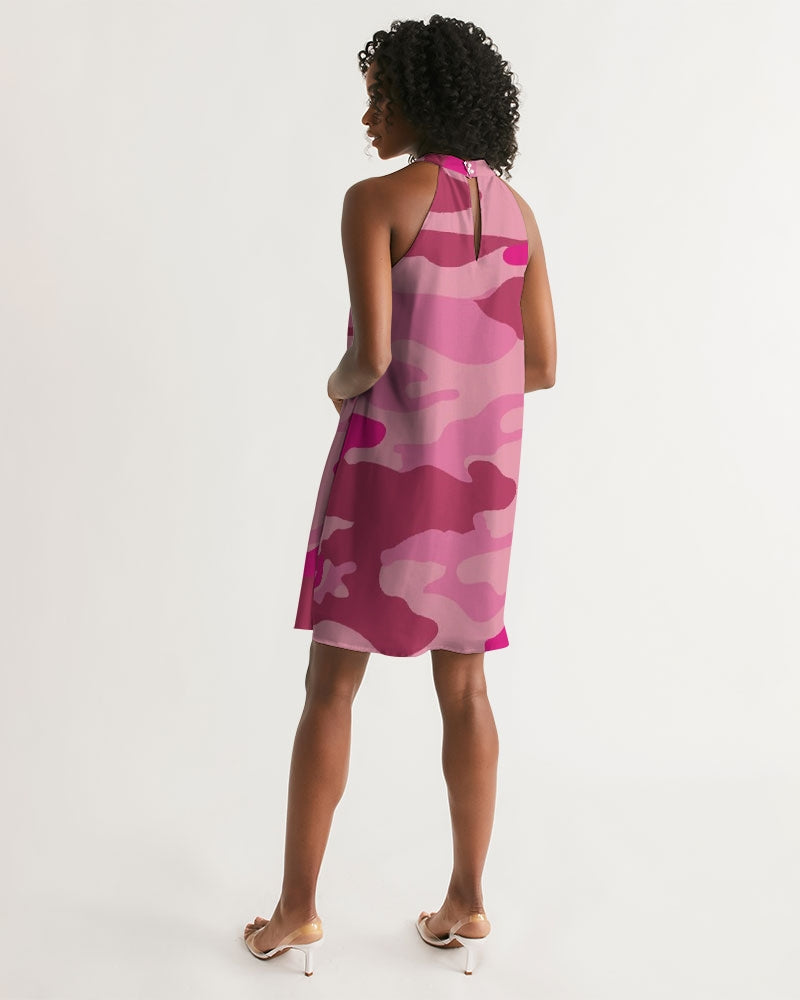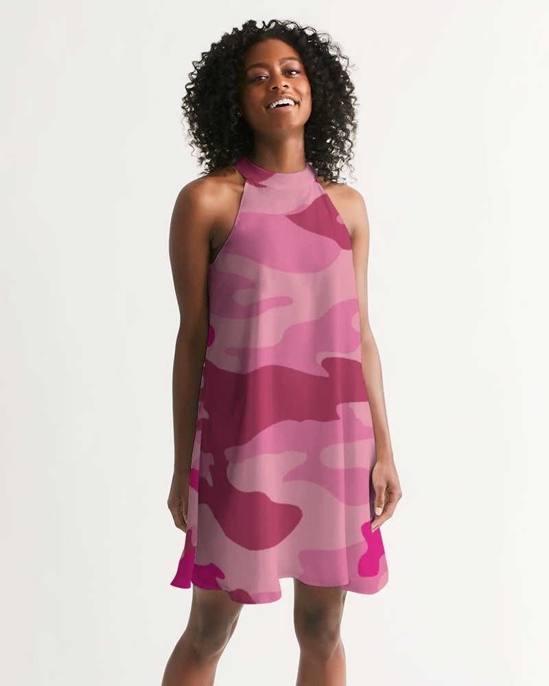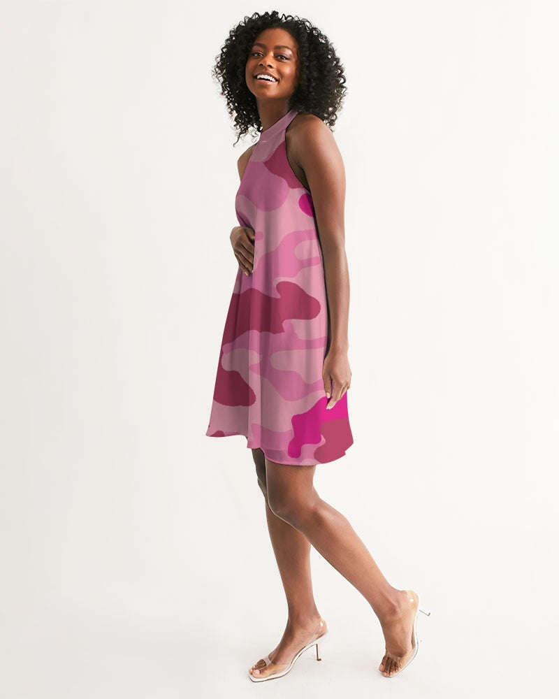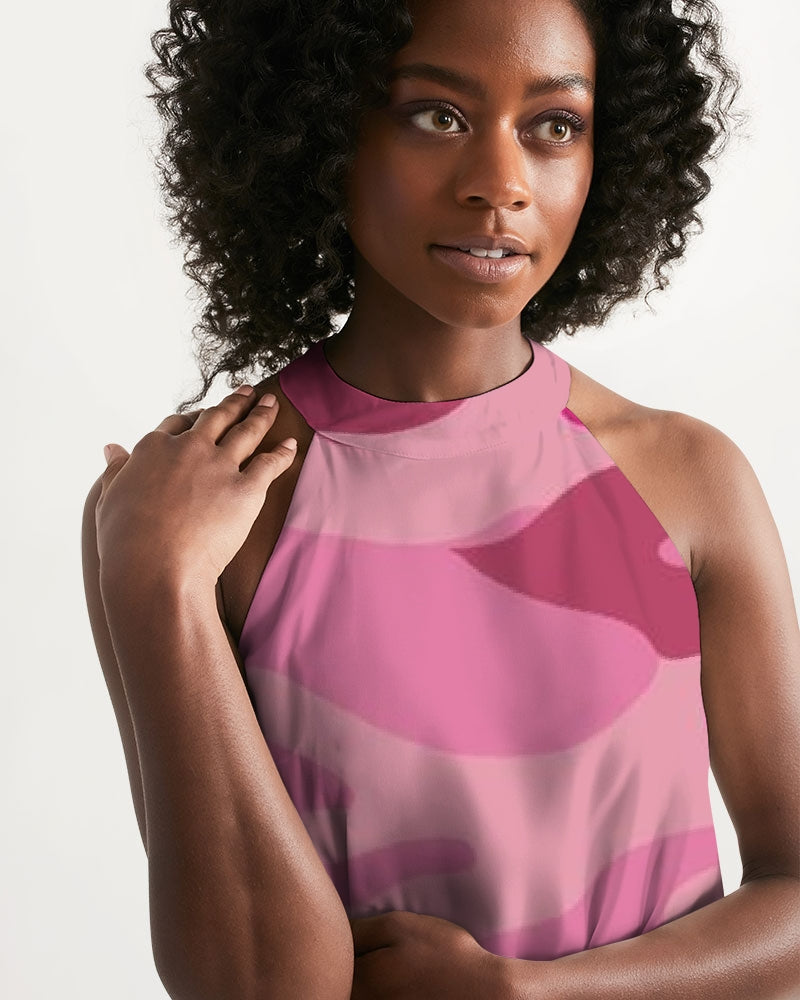 About The ArtPink 3 Color Camouflage Back to nature, natural colors, and shapes. In doing so, get back into harmony, to nature, to natural vessels, and to pure energies. That's why we use original shapes, colors, and combinations. Wear these clothes every day and recharge your body with the energies of nature through shapes and colors. We hope you love it. With love for you.Designed: vecteezy.com Product DetailsElegant yet simple, your personalized design will look phenomenal in our Women's Halter Dress. Handmade from polyester chiffon material and fastened in the back with two chic pearl buttons.