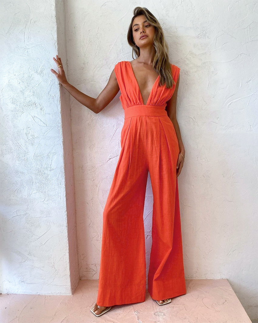 Women Orange Sleeveless Jumpsuit