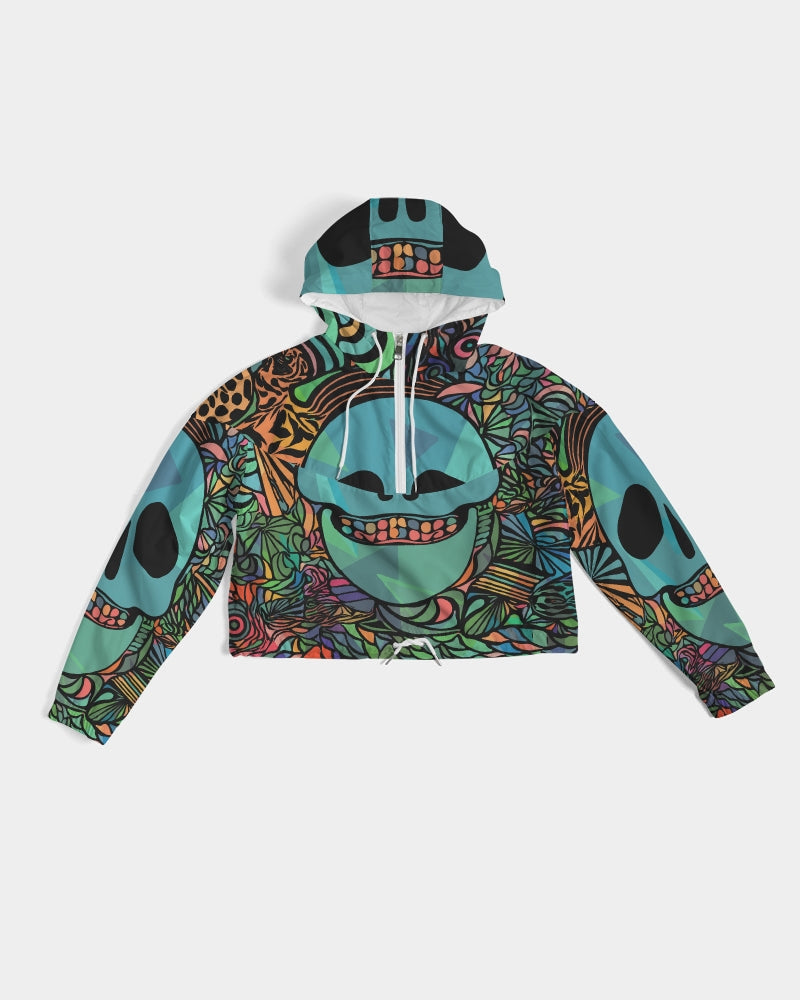Aztec-Inka Collection Mexican Colorful Skull Women's Cropped Windbreaker