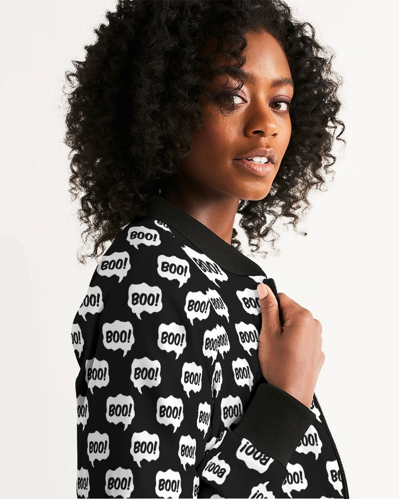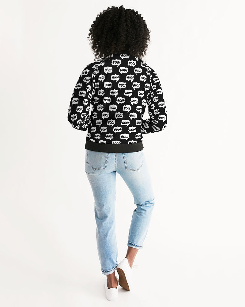 Black Halloween BOO Pattern Women's Bomber Jacket