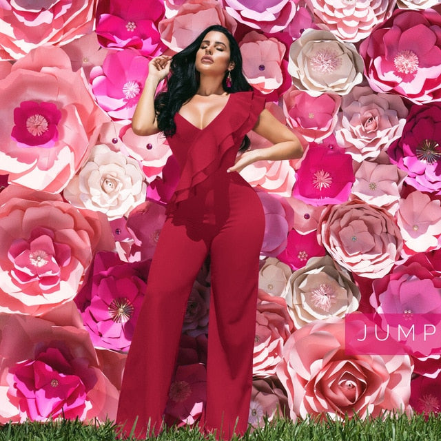 Elegant One Shoulder Ruffles Jumpsuits For Women