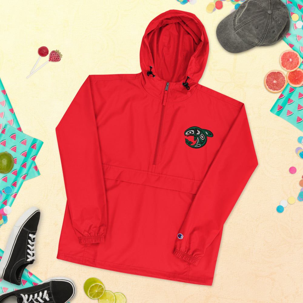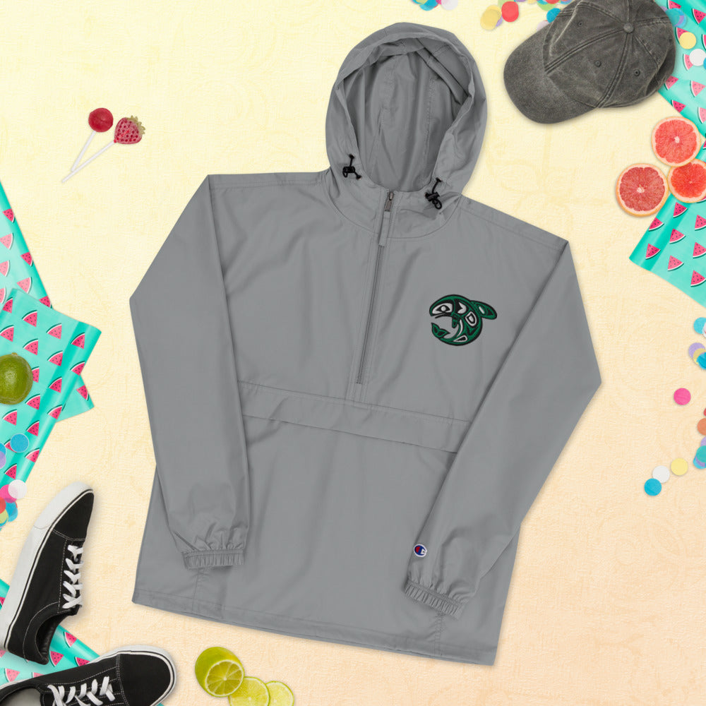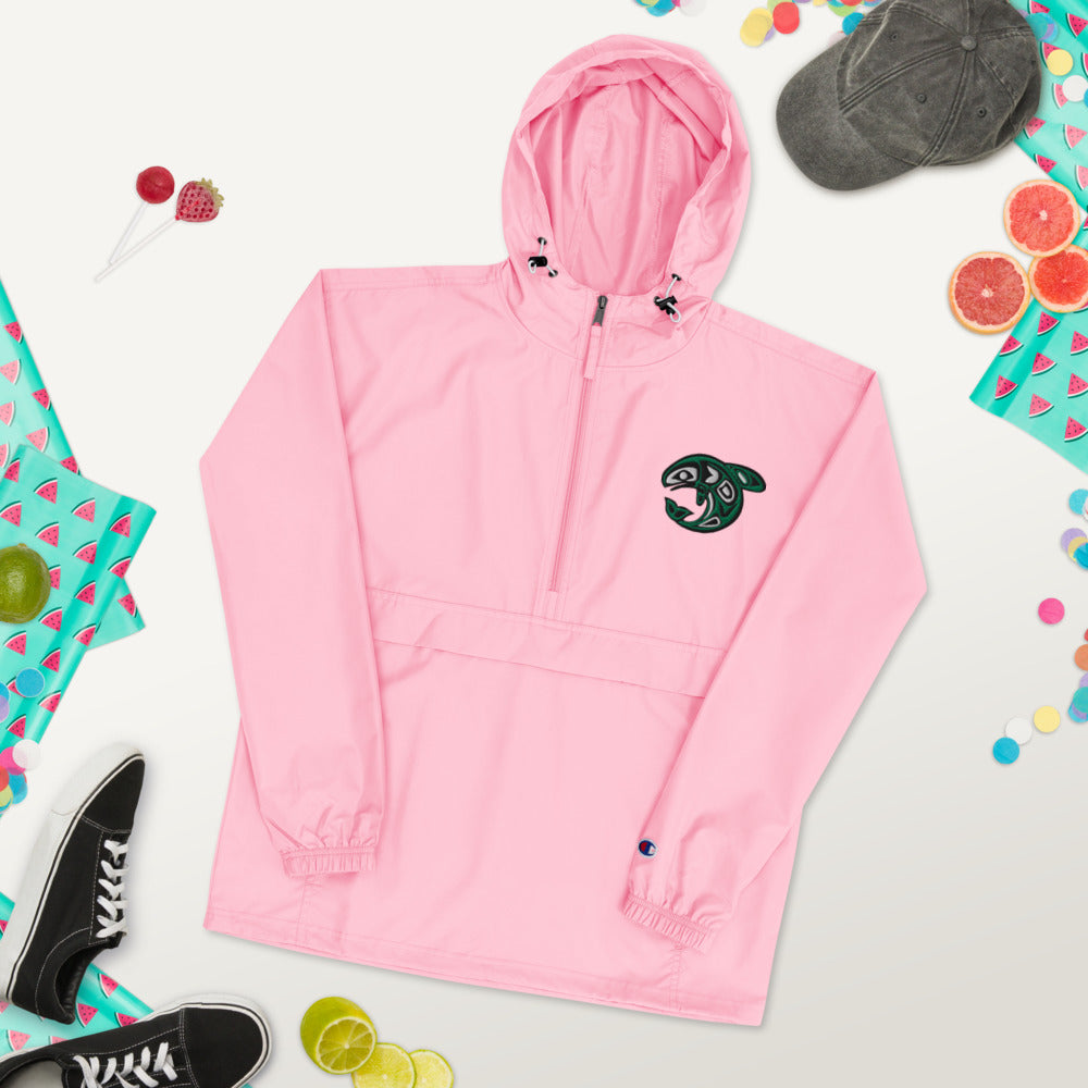 Protect yourself from the elements with this Champion packable jacket. This wind and rain resistant polyester jacket with a detailed embroidery design has a practical hood, front kangaroo pocket, and zipped pouch pocket which you can pull out and use to scrunch the jacket into for convenient storage.