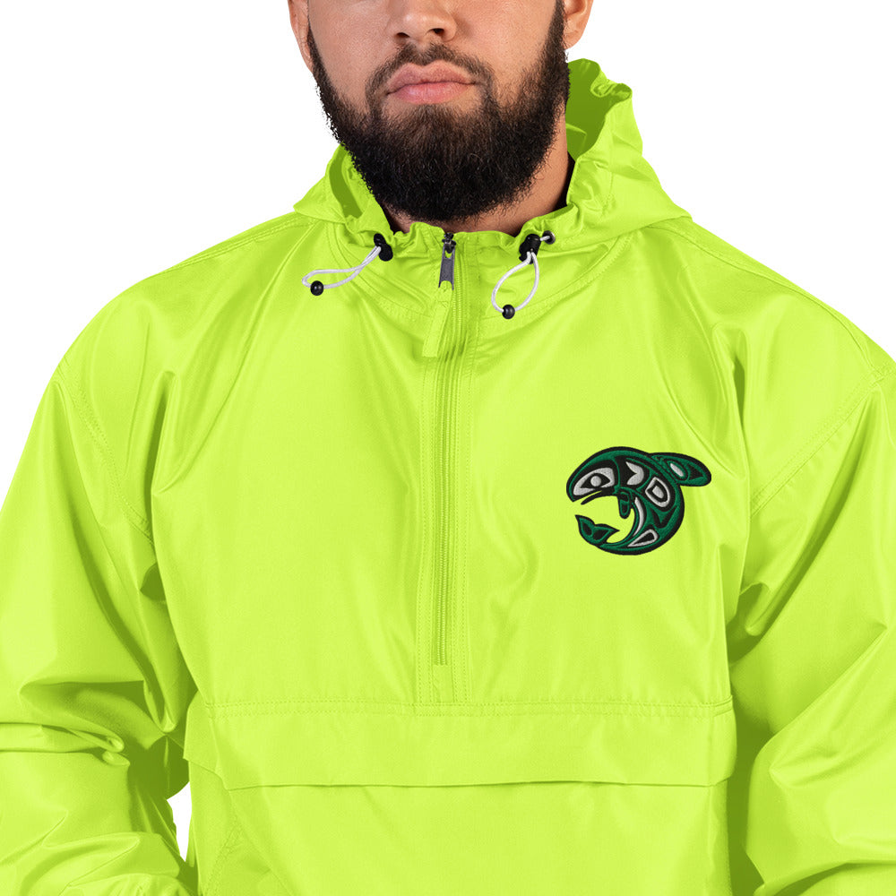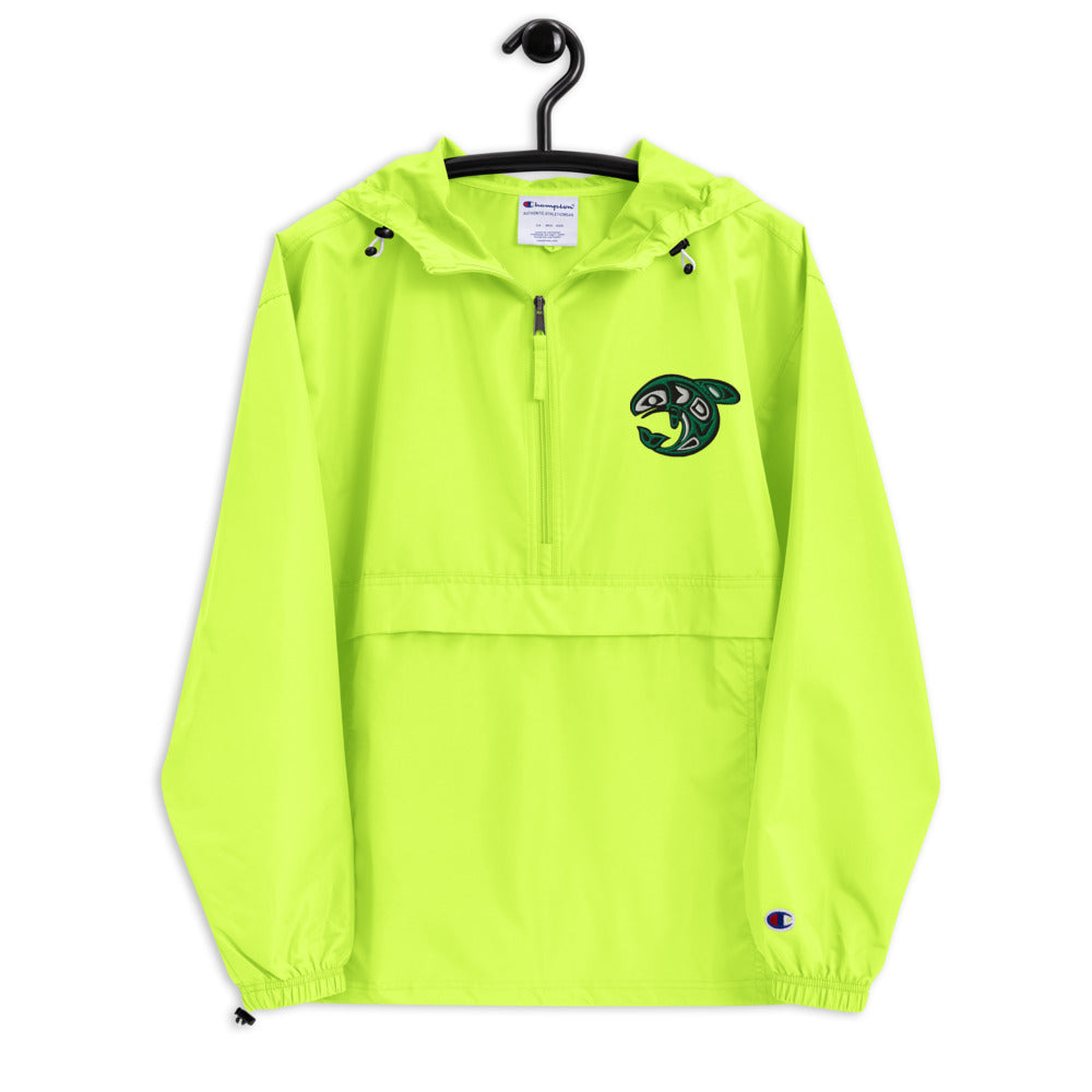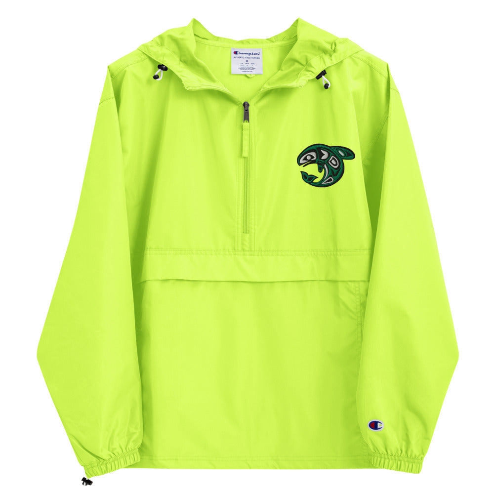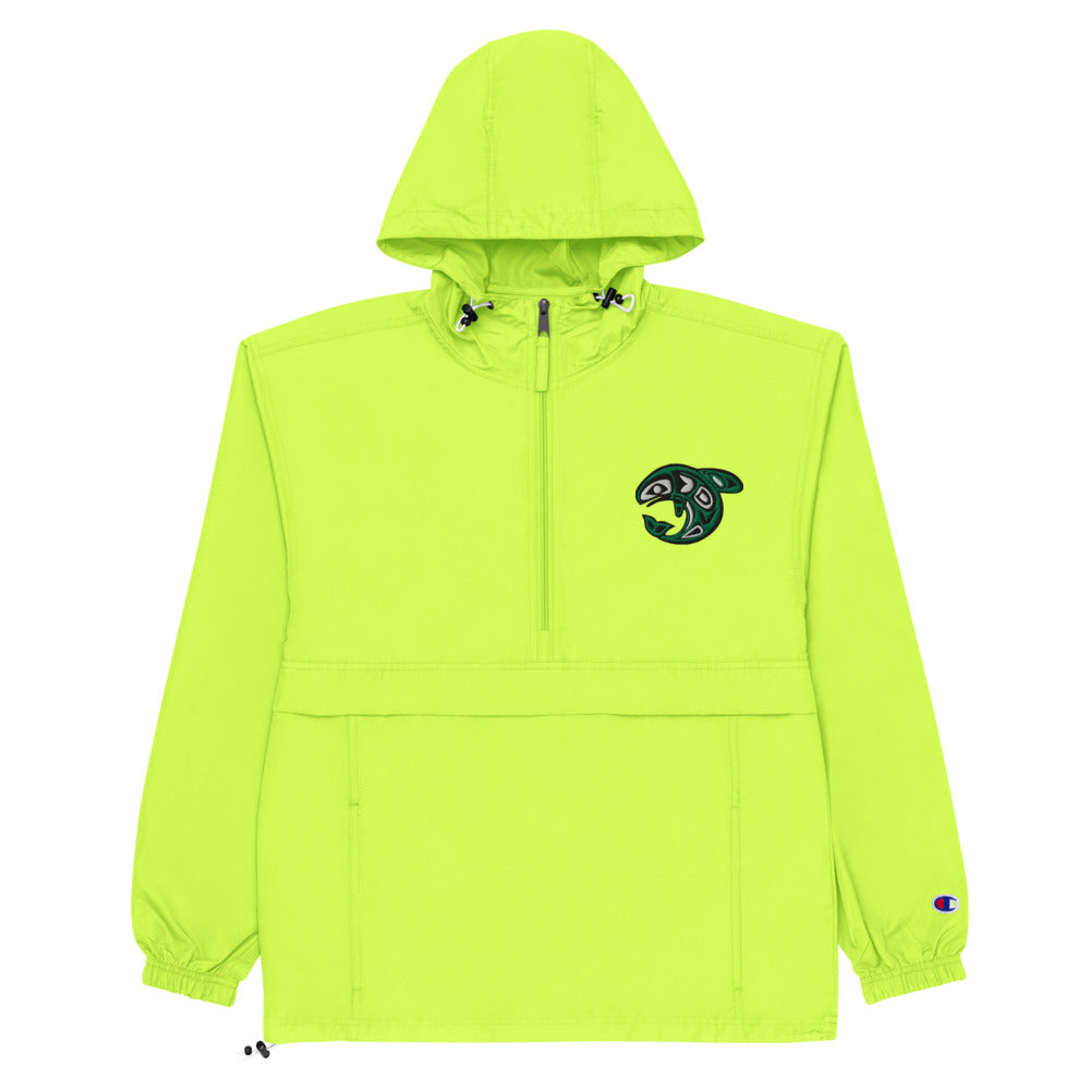 Protect yourself from the elements with this Champion packable jacket. This wind and rain resistant polyester jacket with a detailed embroidery design has a practical hood, front kangaroo pocket, and zipped pouch pocket which you can pull out and use to scrunch the jacket into for convenient storage.