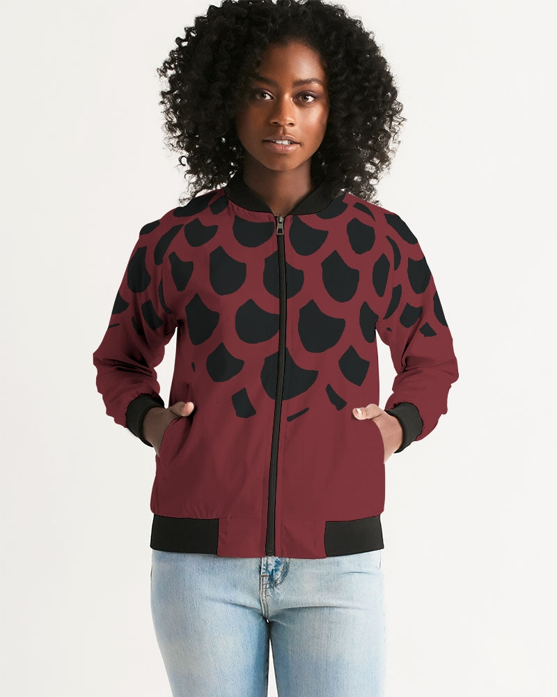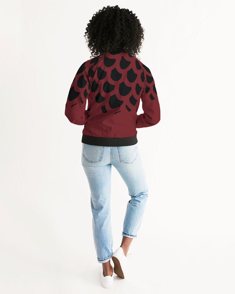 About The ArtLove Red Simple pattern on dark red background Product DetailsHand-cut and crafted with care, your custom designed Women's Bomber Jacket will set off any look! Its lightweight, airy fabric is lined with the perfect amount of insulation for the chillier months making this a great year round go-to.