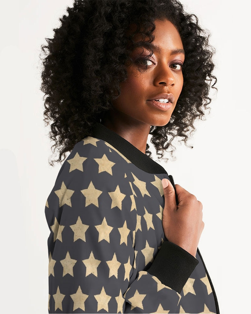 About The ArtMilitary Stars Military stars pattern Product DetailsHand-cut and crafted with care, your custom designed Women's Bomber Jacket will set off any look! Its lightweight, airy fabric is lined with the perfect amount of insulation for the chillier months making this a great year round go-to.