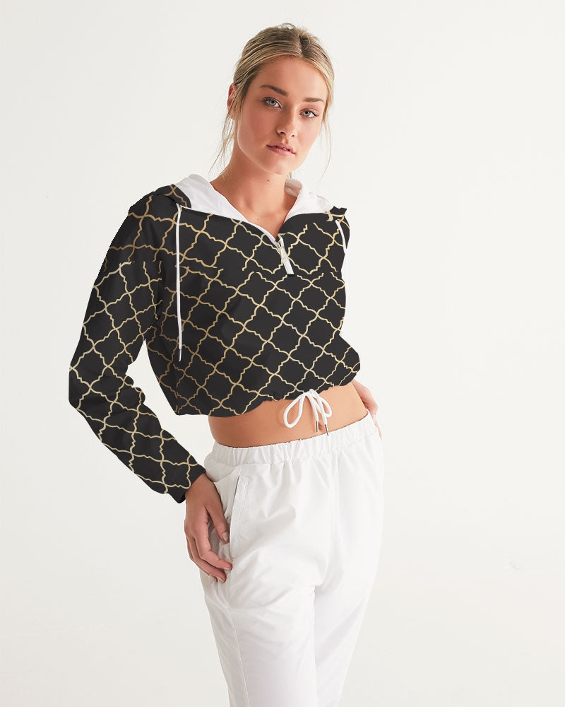 The Miracle of the East Gold Black Arabic pattern Women's Cropped Windbreaker