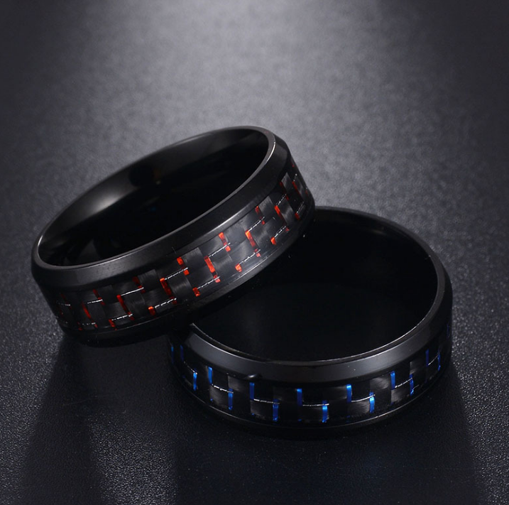 Titanium Steel Black Carbon Fiber Mens Cool Rings Fashion Red Blue Ring Anel Masculino Jewelry