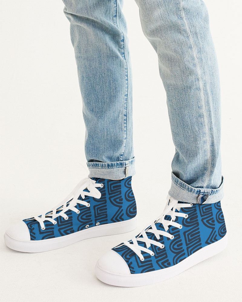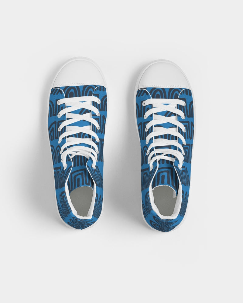 About The ArtWave Doodle on blue Product DetailsRock your custom made kicks on a trendy classic. Our Men's Hightop Canvas Shoe is a minimalist sneaker but gives comfort for a day or edgy night look.