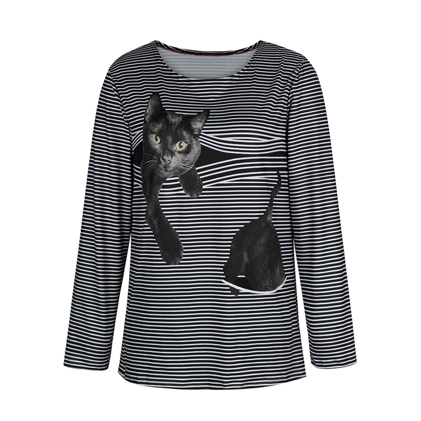 Women Blouse Long Sleeve 3d Cat Printed O-neck Tops