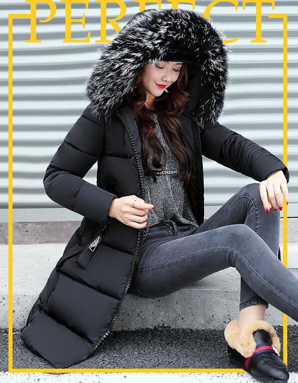 Women Large Fur Collar Padded Cotton Warm Winter Coat