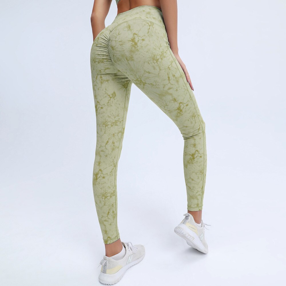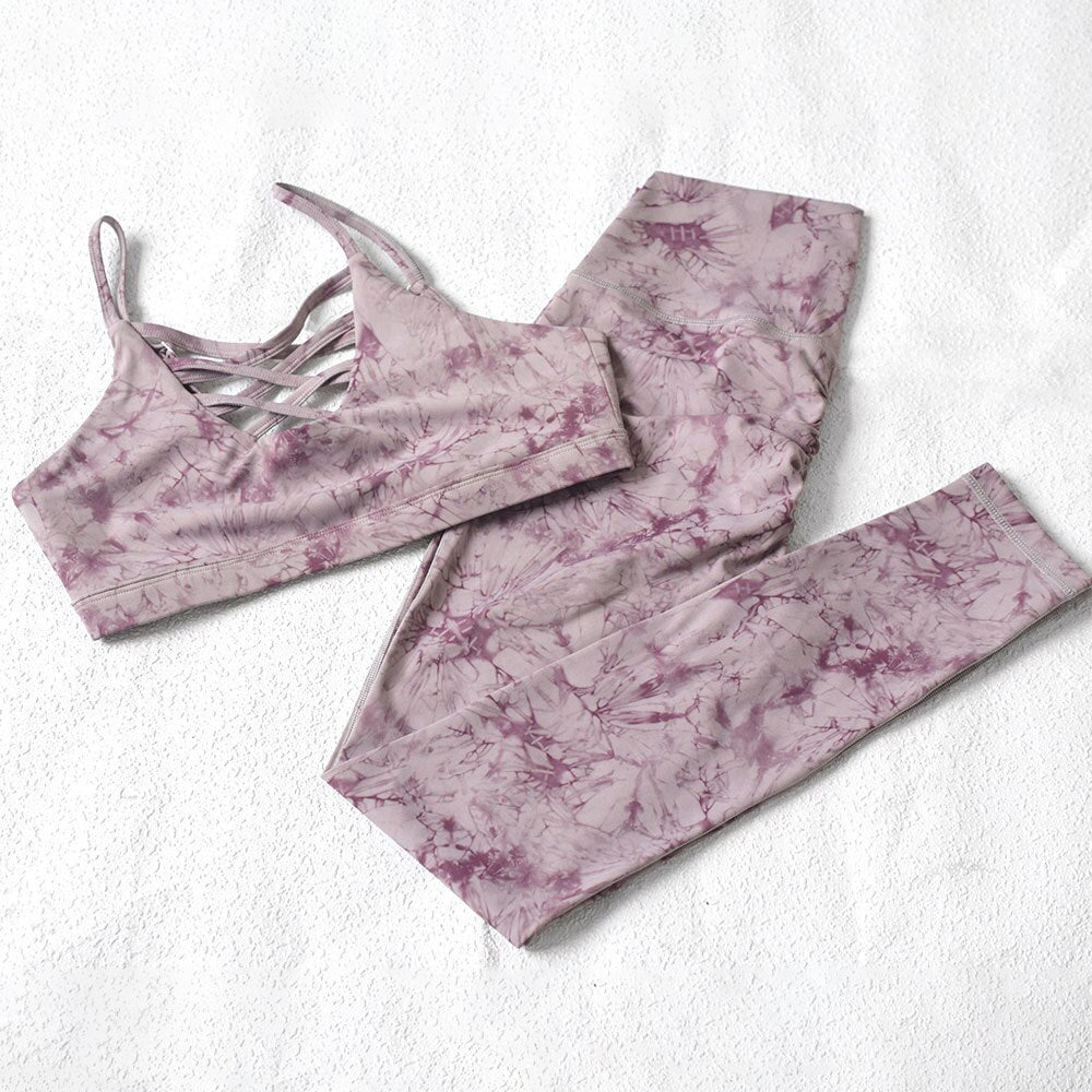 Women Yoga Fitness Set 2 Pcs Tie Dye Sport Leggings-Top